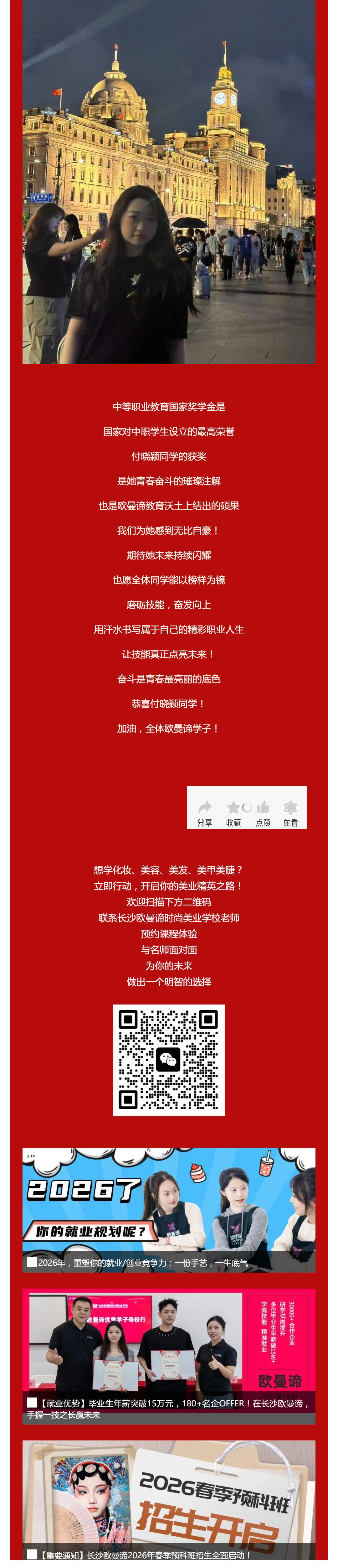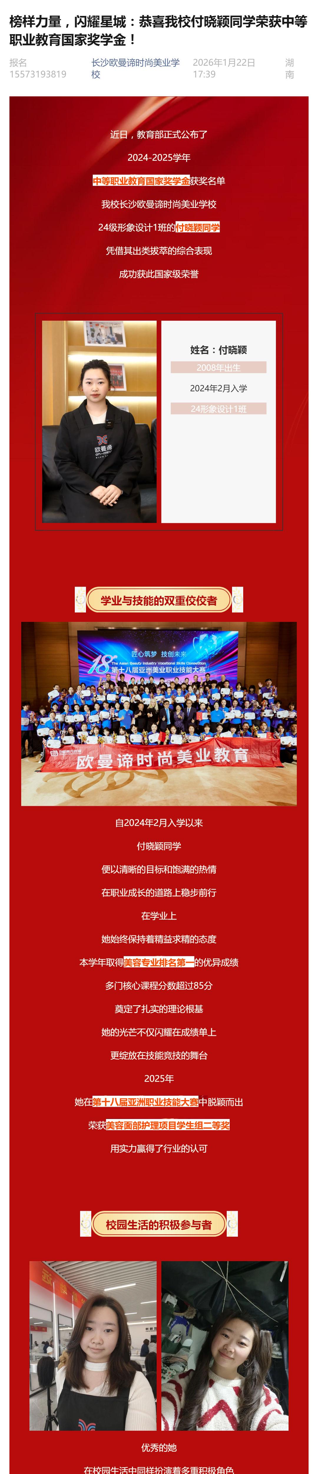 榜样力量,闪耀星城:恭喜我校付晓颖同学荣获中等职业教育国家奖学金!